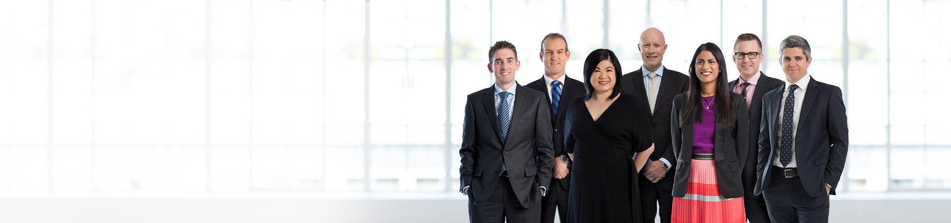 (Above L-R: Bevan Peachey, Daniel Minhinnick, Mei Fern Johnson, Matthew Kersey, Deemple Budhia, John Powell and David Butler.)